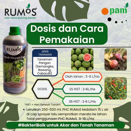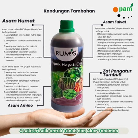 Ladang organik menyediakan pupuk hayati cair berkualitas, RUMOS pupuk hayati cair dengan 5 agen mikroba menguntungkan. Dapat membantu merawat kualitas lahan dan menyuburkan tanaman anda.